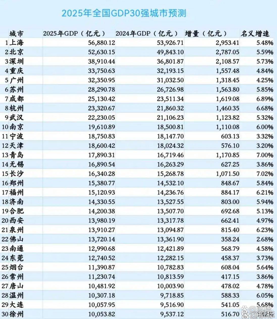开元棋牌,开元棋牌官方网站,开元棋牌APP下载刚出炉的2025 年全国 GDP30 强预测表,藏着不少城市的 “增长暗码”——上海、北京稳稳站在 5 万亿梯队,而有几个城市的表现,可能比头部更值得普通人琢磨:成都以 6.89% 的名义增速领跑前 10 强,青岛、长沙更是以 7% 左右的增速跑赢大盘。这些城市凭啥在经济大盘里 “跑更快”?今天咱们拆开数据,聊聊它们的 “增长内核”。