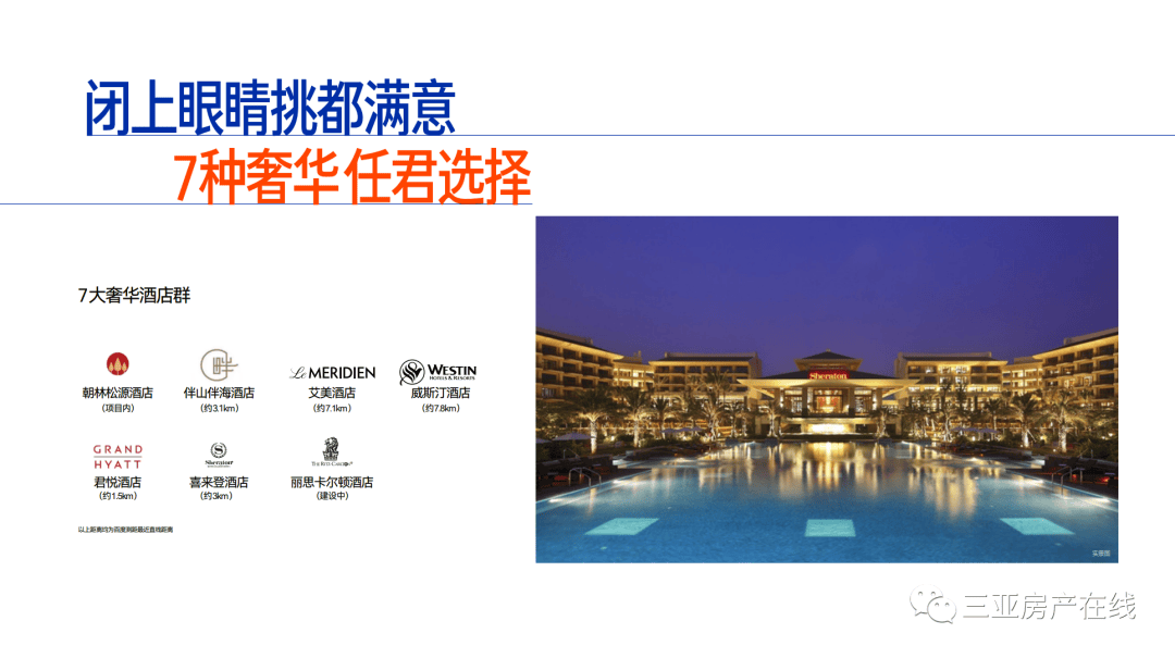 7座时尚奢华酒店 —— 朝林松源、君悦、伴山伴海、喜来登、艾美、威斯汀、丽思卡尔顿(建设中)