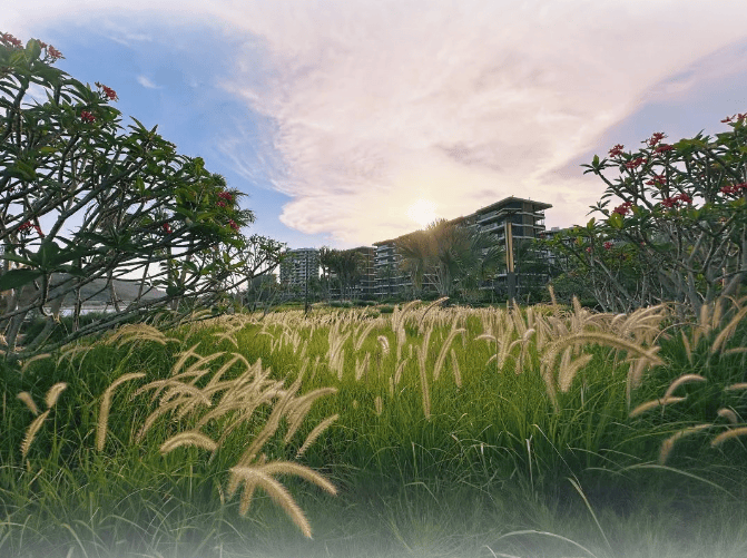 飞茑千屿以自然为底色,打造海岸疗愈聚场,这里有着令人着迷的斑斓梦境,具有自然野趣的景致让人流连忘返,椰树摇曳、草坪柔软,各种植物在阳光下鲜绿透亮,茂密、纤柔的狼尾草随风摇摆,随手一拍都是生活的大片,你可以漫步、瞰海、冥想……海风营地,在疗愈绿洲与静谧水岸,看海鸟划过长空,傍晚时分,沐浴在落日的余晖中,在自然浸润下收获纯粹的疗愈与放松。