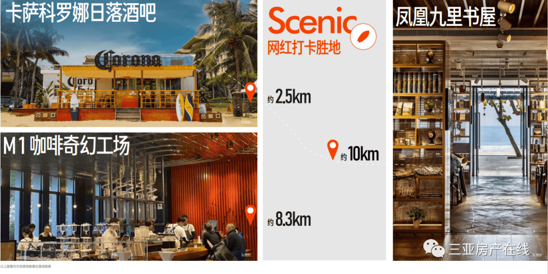 N多网红打卡点 —— 卡萨科罗娜日落酒吧(约2.5km)、M1咖啡奇幻工场(约8.3km)、冲浪俱乐部、书屋等网红娱乐丰盈海上趣味生活。