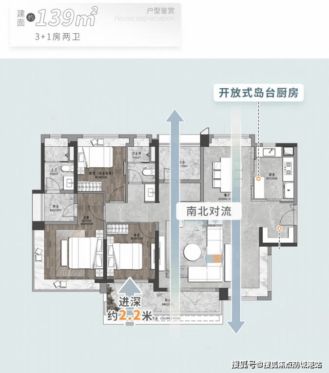 :项目在售户型覆盖刚需至改善全需求,包括 98㎡三房、129㎡四房、139㎡四房、182㎡大四房等。所有户型均采用全南向或南北对流设计,采光通风俱佳。