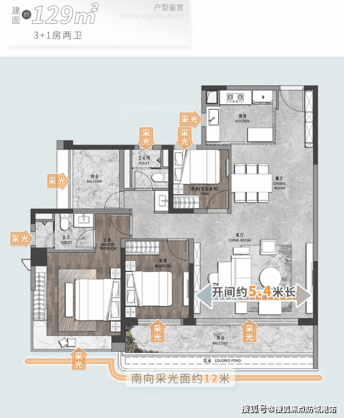 :本次重点加推的是 6 栋,主打 129㎡南向四房户型,深受市场欢迎。该户型纯南向,正对社区中央园林,采光极佳,视野开阔。