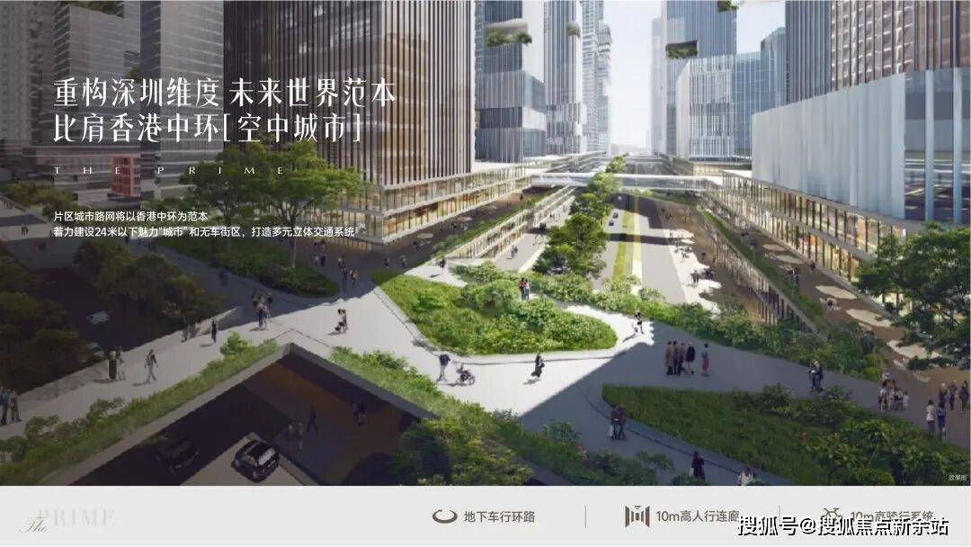 项目片区的城市路网将以香港中环为范本,着力建设24米以下魅力“城市” ,并利用10m高人行连廊和10m高骑行系统等打造无车街区,建成未来城市的多元立体交通系统范本。