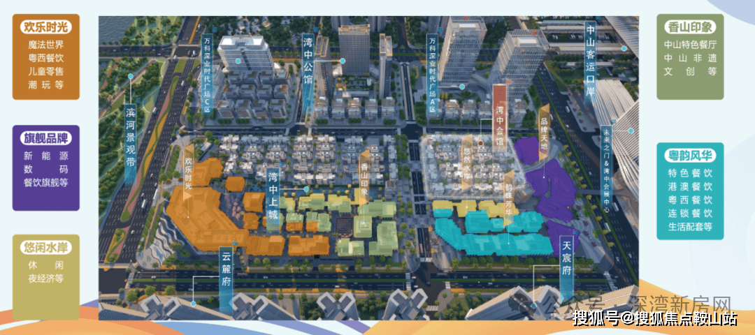 为营造多元沉浸式消费体验,湾中上城更规划出欢乐时光、悠闲水岸、粤韵风华、香山印象、旗舰品牌五大业态分区,营造湾区一站式微度假目的地。